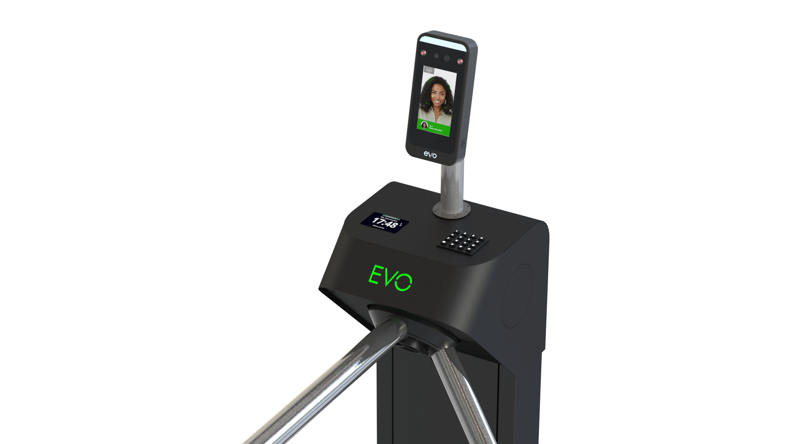 A Catraca Evo Standard foi desenvolvida para oferecer um controle de acesso seguro, eficiente e versátil para diversos ambientes. Equipada com leitor facial EVO, permite reconhecimento facial para o sentido escolhido de instalação, agilizando a liberação e garantindo um fluxo de entrada e saída rápida e segura.