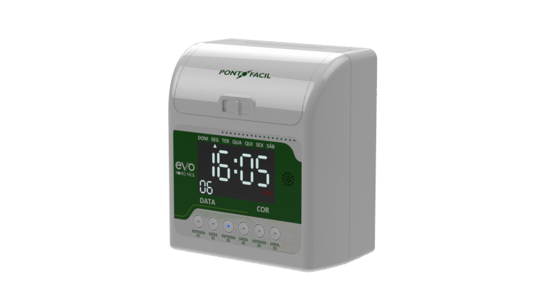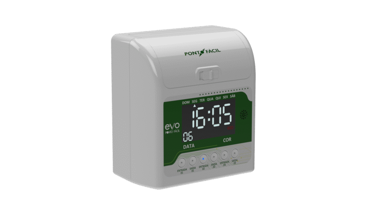 O Evo Ponto Fácil é a solução ideal para empresas que buscam um controle de ponto prático, eficiente e dentro das normas da Portaria 671 do MTE. Com um design compacto e resistente em ABS, conta com um display amplo e iluminado, garantindo ótima visualização do horário.