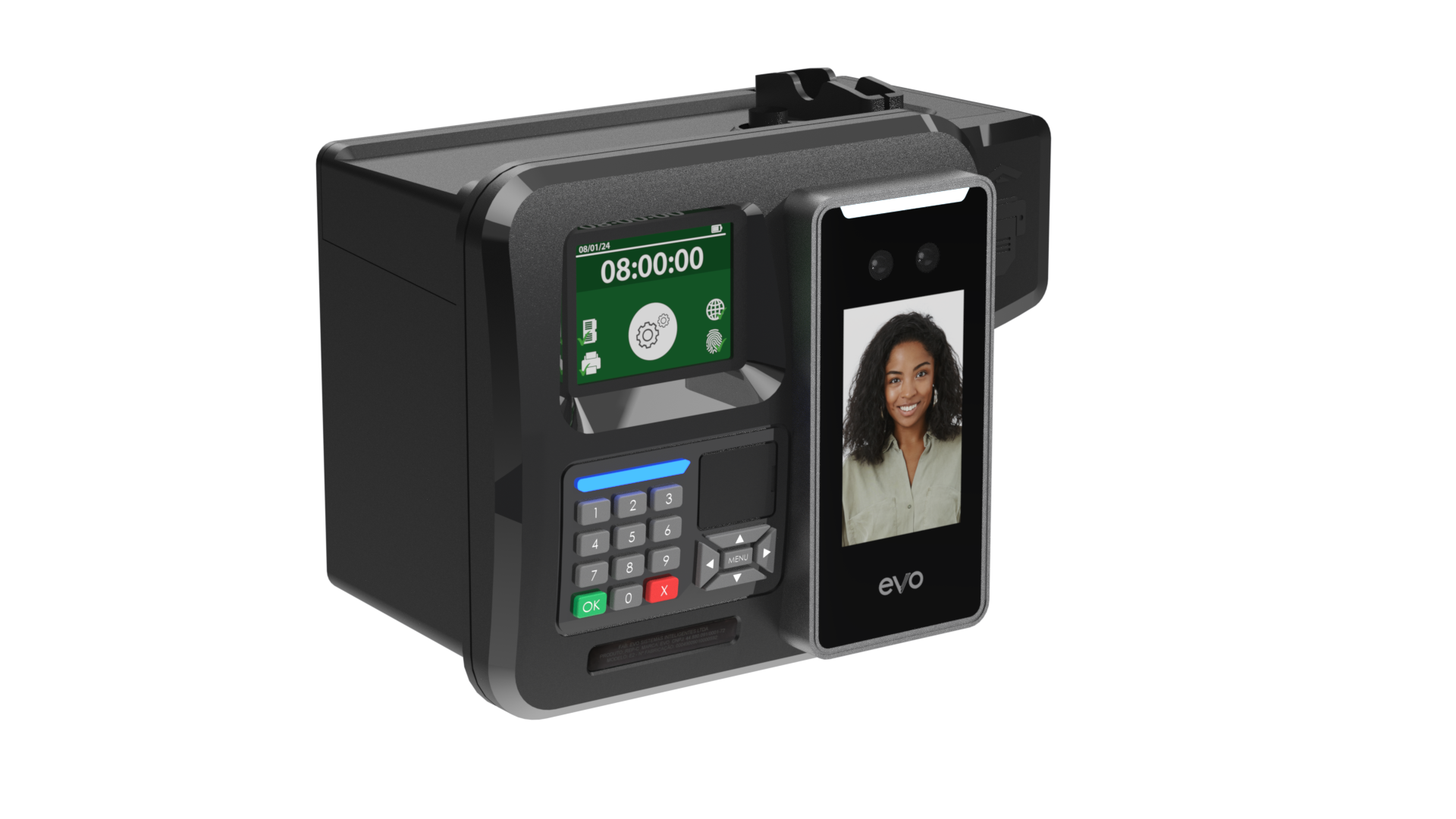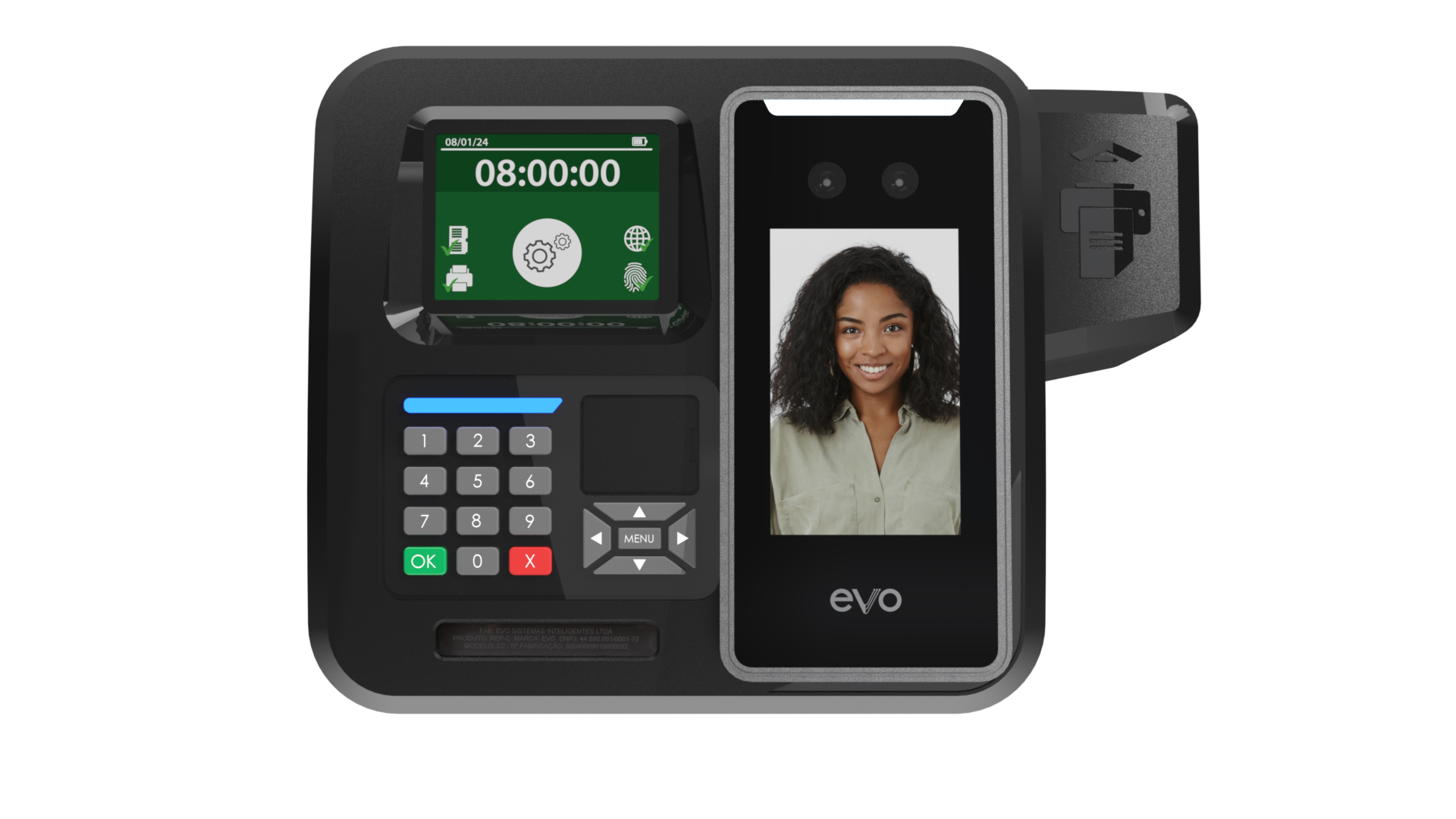 O EVO REP-C é um relógio de ponto eletrônico homologado pelo MTE conforme a portaria 671/21, com certificação de segurança compulsória emitida pelo NCC (acreditado pela CGCRE/INMETRO).